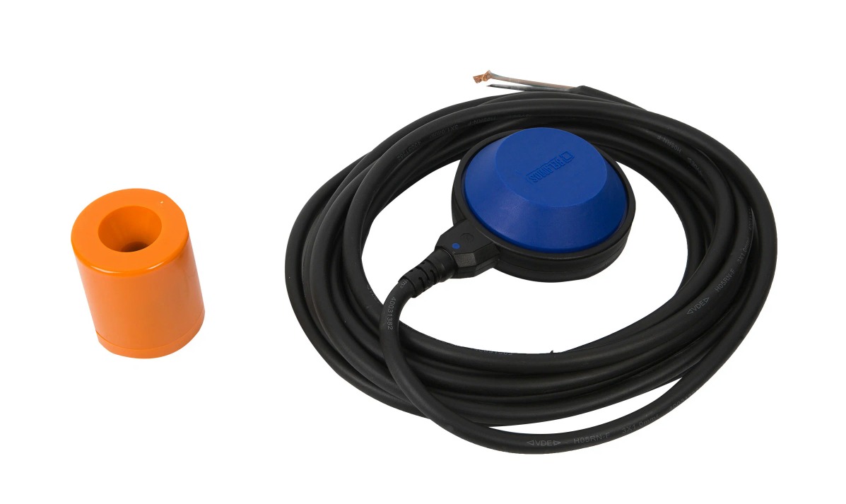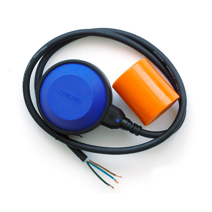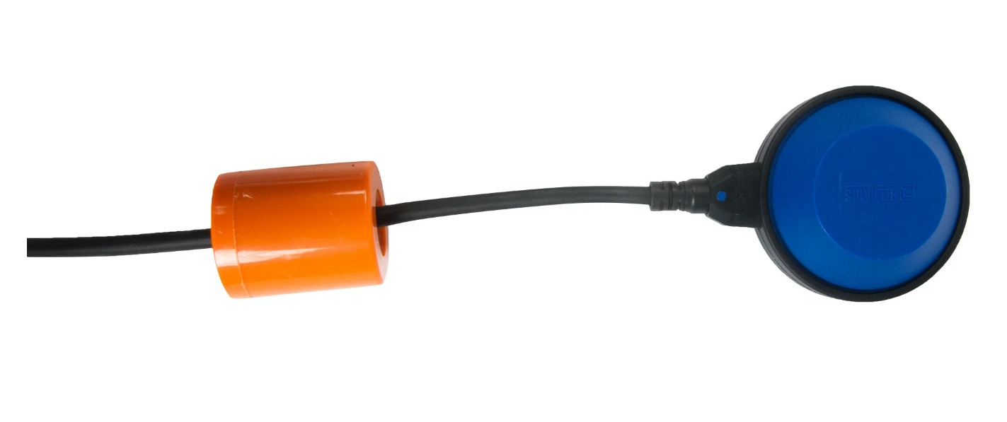 Поплавковый выключатель состоит из плавающей пластиковой коробки. Внутри этой коробки находится электрический переключатель и стальной шарик, который при изменении положения поплавка замыкает (или размыкает) контакты переключателя. От переключателя выходят кабель с тремя проводами (обычно это коричневый, синий и черный цвета): один общий и два от нормально закрытого и нормально открытого контактов переключателя.