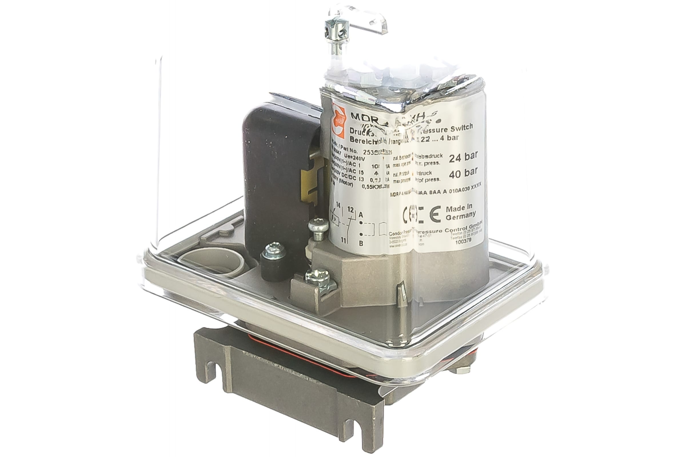 Реле давления FF4-4 DAH (MDR-F 4 HAA SAA A 010A030) CONDOR WERKE 100386009 предназначено для контроля и регулирования давления жидкости или газа в воздушных компрессорах, водяных насосах, установках повышения давления, противопожарных устройствах, установках нагнетания масла, приборах высокого давления.