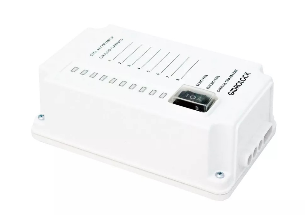 Блок управления Premium предназначен для контроля за состоянием датчиков протечки воды, подключенных к системам Gidrolock. Управляет шаровыми кранами с электроприводами Gidrolock 12V и выдает звуковое оповещение при возникновении аварии в системах водоснабжения и отопления. Функциональные особенности: - функция контроля протечки воды по 8 зонам - функция защиты от закисания: один раз в 2 недели, блок управления подает команду на кратковременное открытие/закрытие шарового крана с электроприводом Gidrolock - функция пониженного энергопотребления: система обесточивает шаровые краны c электроприводом Gidrolock во время ожидания - звуковая индикация аварийной ситуации, а также технических сбоев, таких как: разряд аккумуляторной батареи (в комплект блока управления Premium не входит), невыход радио датчика на связь и т.п. - функция удаленного управления шаровых кранов с электроприводом Gidrolock - функция принудительного открытия кранов, в том числе при аварийном перекрытии воды