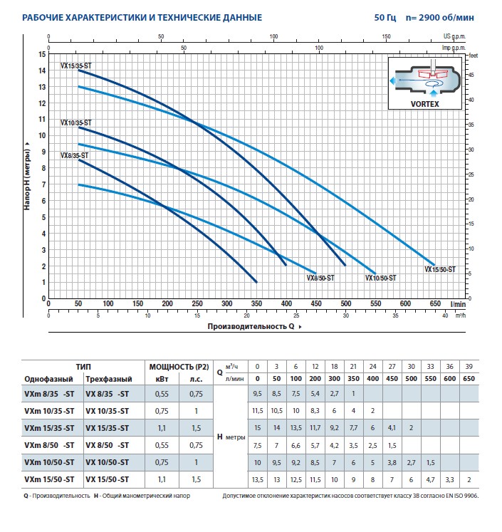 Насос VX 8/50-ST 10м рабочее колесо "VORTEX" из нерж.стали