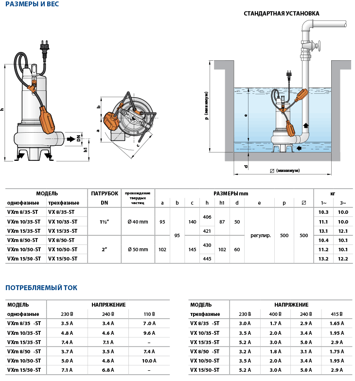 Погружной фекальный насос Pedrollo модели VXm 15/35-ST с корпусом и рабочим колесом Vortex из нержавеющей стали предназначены для использования в быту, коммунальном хозяйстве и промышленности во всех случаях, когда в перекачиваемой жидкости присутствуют твердые примеси во взвешенном состоянии (например, для грунтовых, поверхностных и сточных вод). Эти насосы применяются для откачивания воды из затапливаемых помещений, таких как подвалы, подземные гаражи, автомойки; откачивания бытовых сточных вод; опорожнения канализационных отстойников; удаления нечистот.