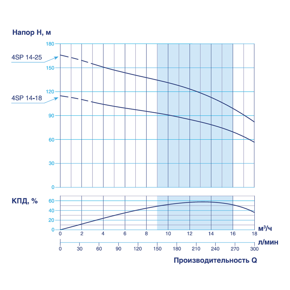 - Диаметр насоса, дюймы (мм) 4ʺ (100)