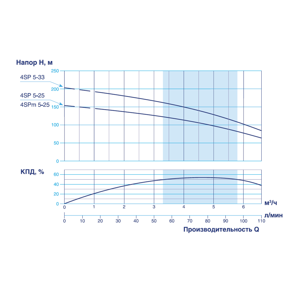 - Диаметр насоса, дюймы (мм) 4ʺ (100)