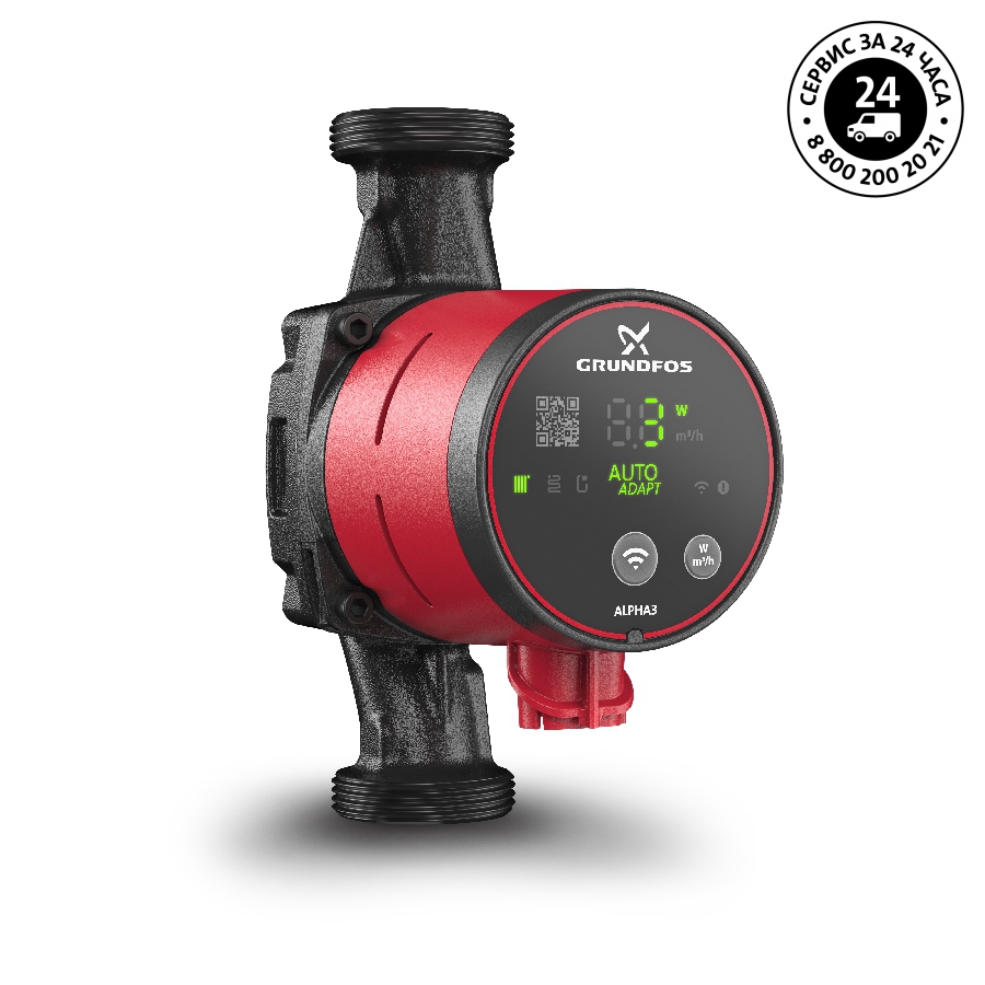 - Циркуляционный насос Grundfos ALPHA3 25-40 оснащен функцией балансировки системы отопления: насос, взаимодействуя с пользователем через мобильное приложение Grundfos GO Balance, анализирует гидравлические характеристики системы отопления и выдаёт рекомендации по настройке запорно-регулирующих клапанов.