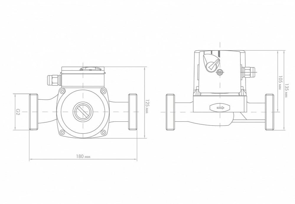 •  Установочный размер между присоединительными фланцами — 180 мм.