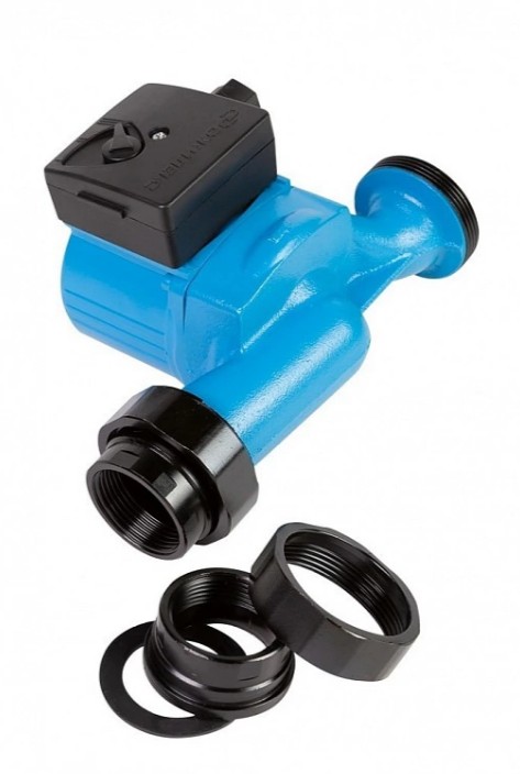 Присоединительный размер гаек — 1¼ дюйм (32 мм). Максимальный напор достигает 4,6 метров водяного столба, а расход теплоносителя доходит до 55 л/мин.