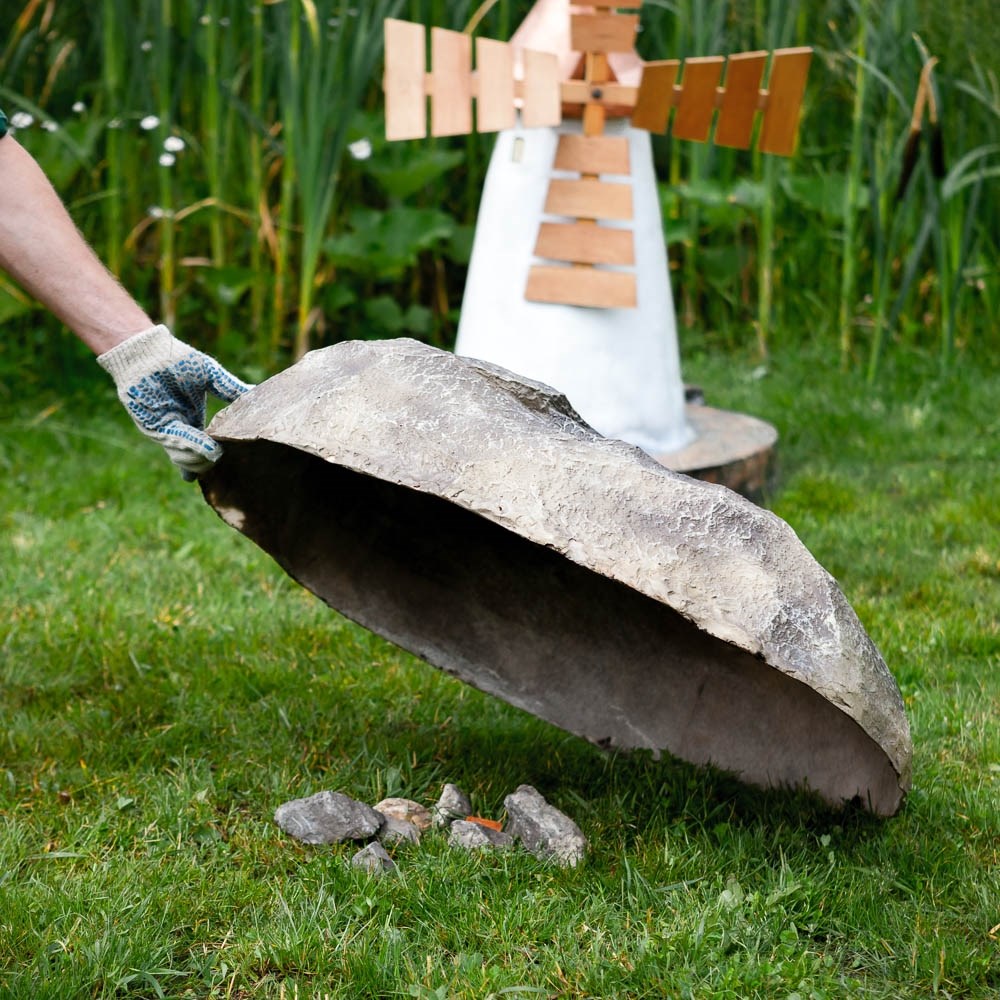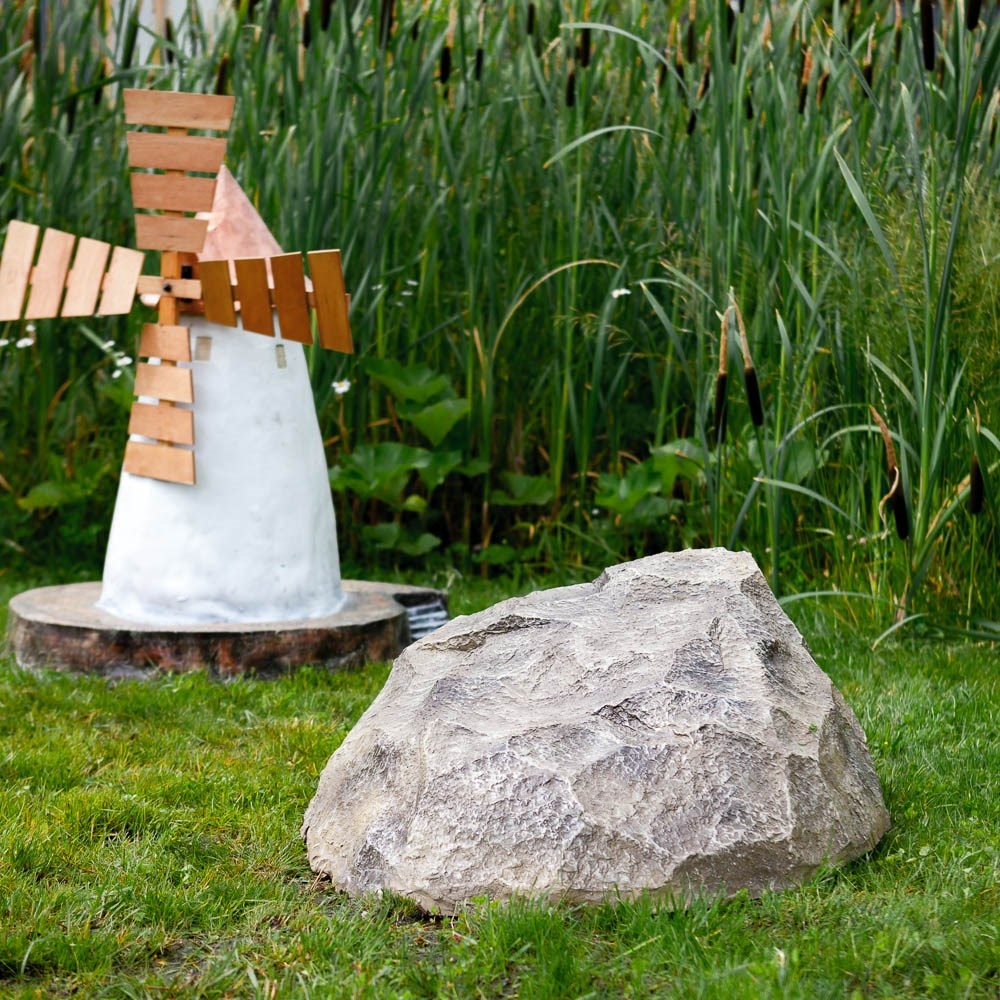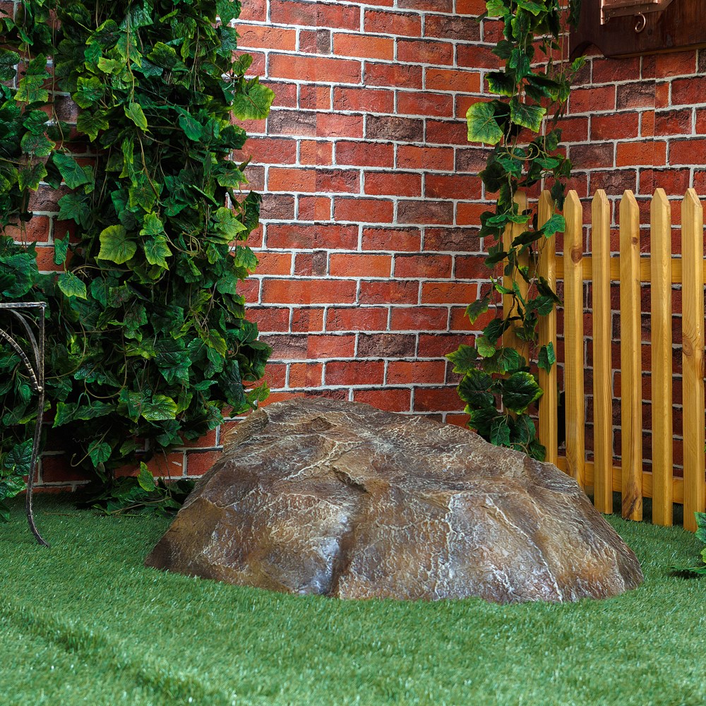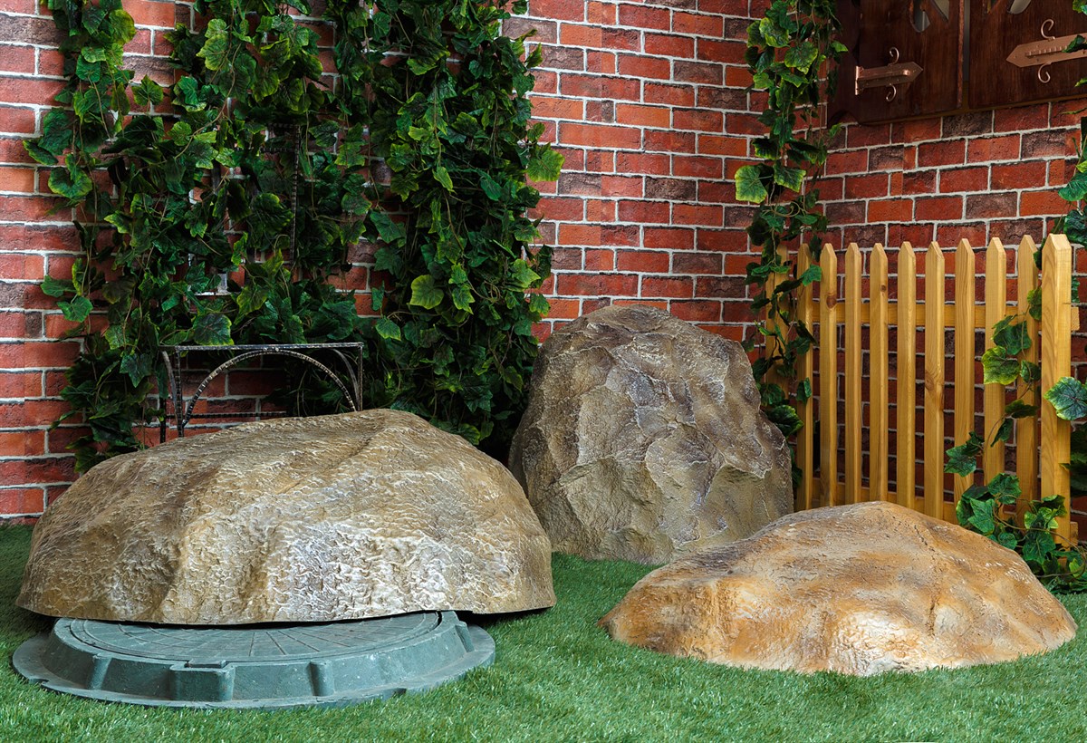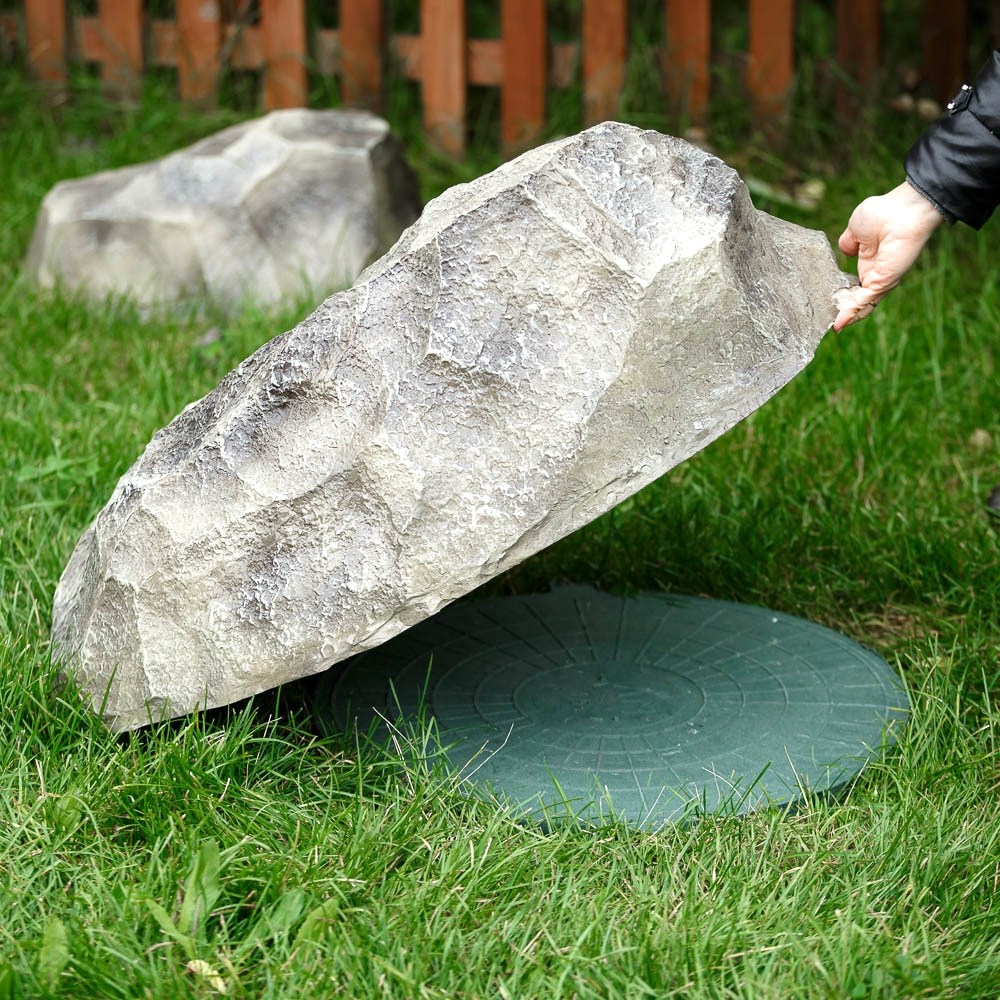 Декоративный камень для сада может служить как крышка, закрывающая неприглядные места на вашем садовом участке. Выглядит как натуральный, камень выполнен из стеклопластика, экологически чистого материала. Фигура камня полая внутри, поэтому легко может перемещаться из одного места садового участка в другой одним человеком.