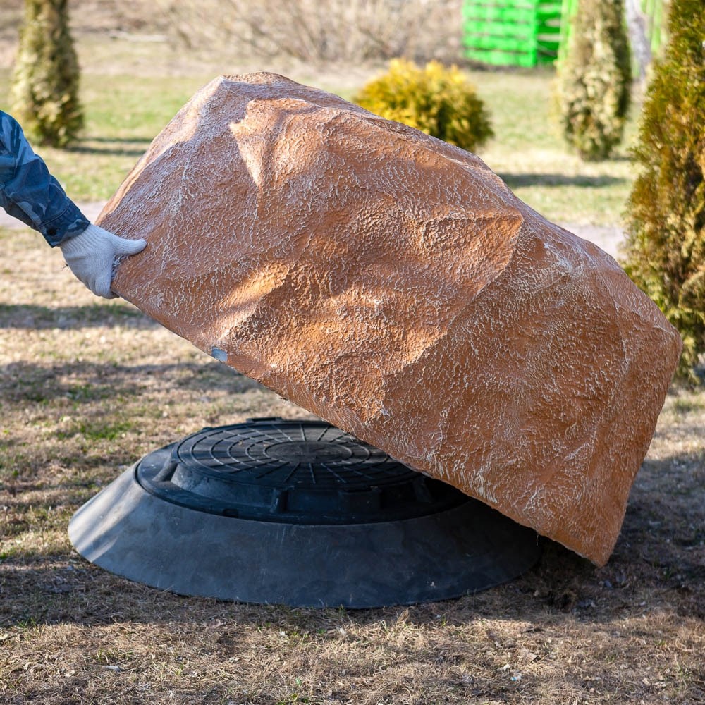 Декоративная крышка люка для септика Валун U08309-Р(Ч) ширина 130 см