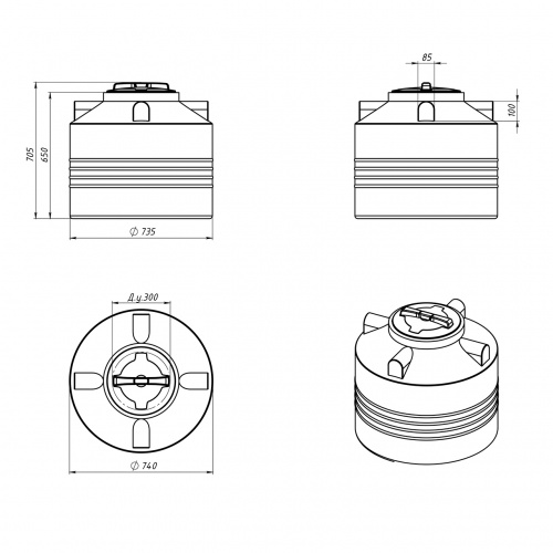 Вертикальная цилиндрическая бочка ЭВЛ 200 л имеет максимально устойчивую конструкцию