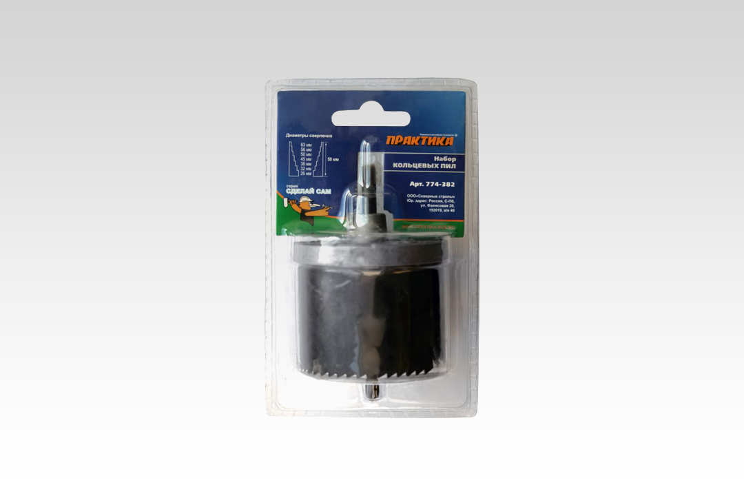 Набор разрезных кольцевых пил для сверления отверстий среднего диаметра в пластике, дереве, фанере, ДСП, гипсокартоне.