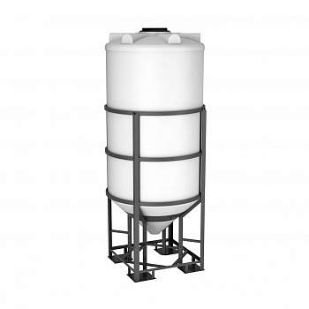 Бочка ФМ 2000 в обрешетке представляет собой ёмкость цилиндрической формы с коническим днищем. За счет вертикального расположения достигается значительная экономия площади.