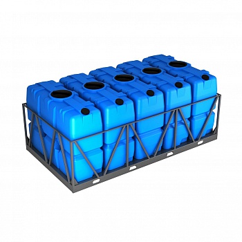 Комплект емкостей пластиковых 5 шт на 2000 литров в обрешетке (10000 литров), произведен на заводе, который использует импортное оборудование для ротоформовки.