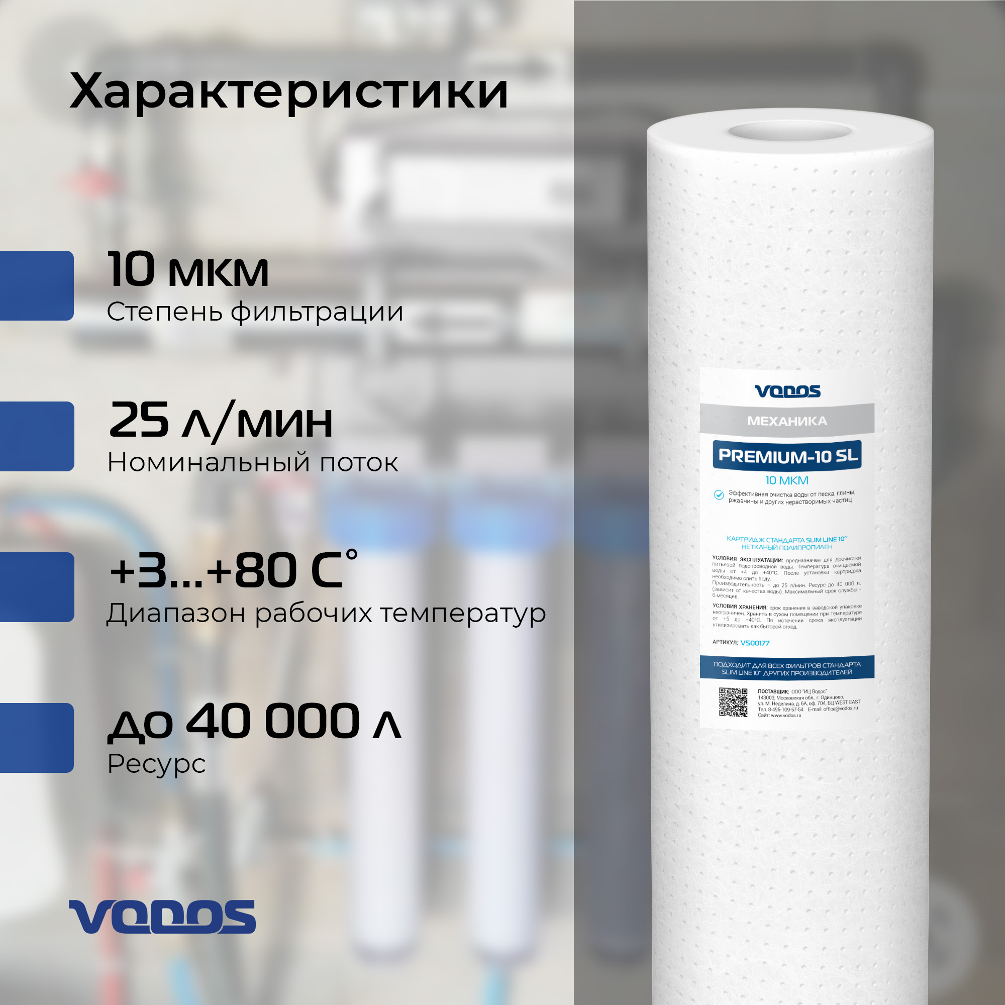 Картридж мех. очистки VODOS PREMIUM-10 SL, 10 мкм., вспененный полипропилен