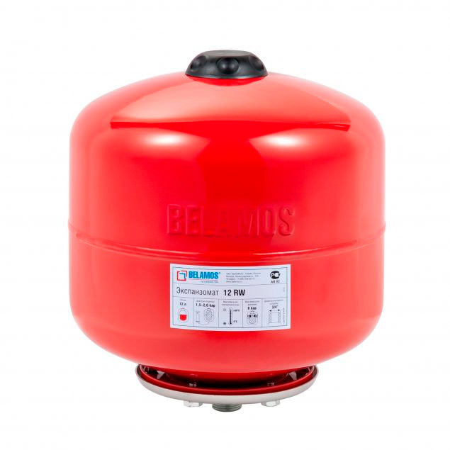 Belamos 12RW – расширительный бак мембранного типа. Предназначен для компенсации расширения теплоносителя при изменении температуры в системах отопления закрытого типа и поддержания в них рабочего давления. Устанавливается в автономных системах отопления жилых домов, общественных зданиях, коттеджах и др.