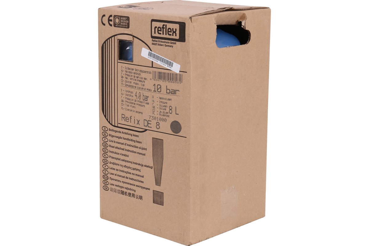 Гидроаккумулятор Reflex DE 8 предназначен для аккумулирования воды, снижения гидроударов, поддержания давления в системах питьевого водоснабжения, горячего водоснабжения, систем пожаротушения, промышленного водоснабжения.