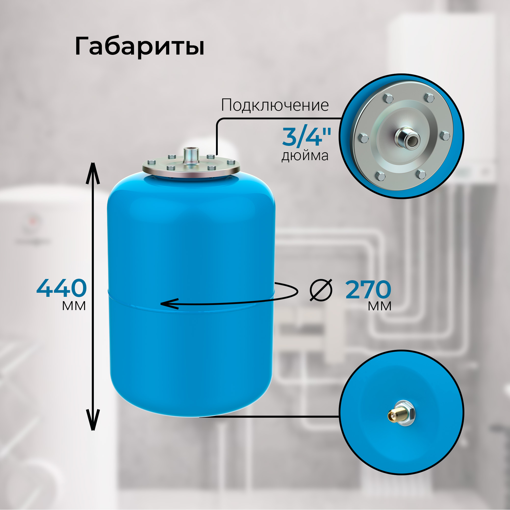- Размер присоединения, дюймы (мм) 3/4ʺ (20)