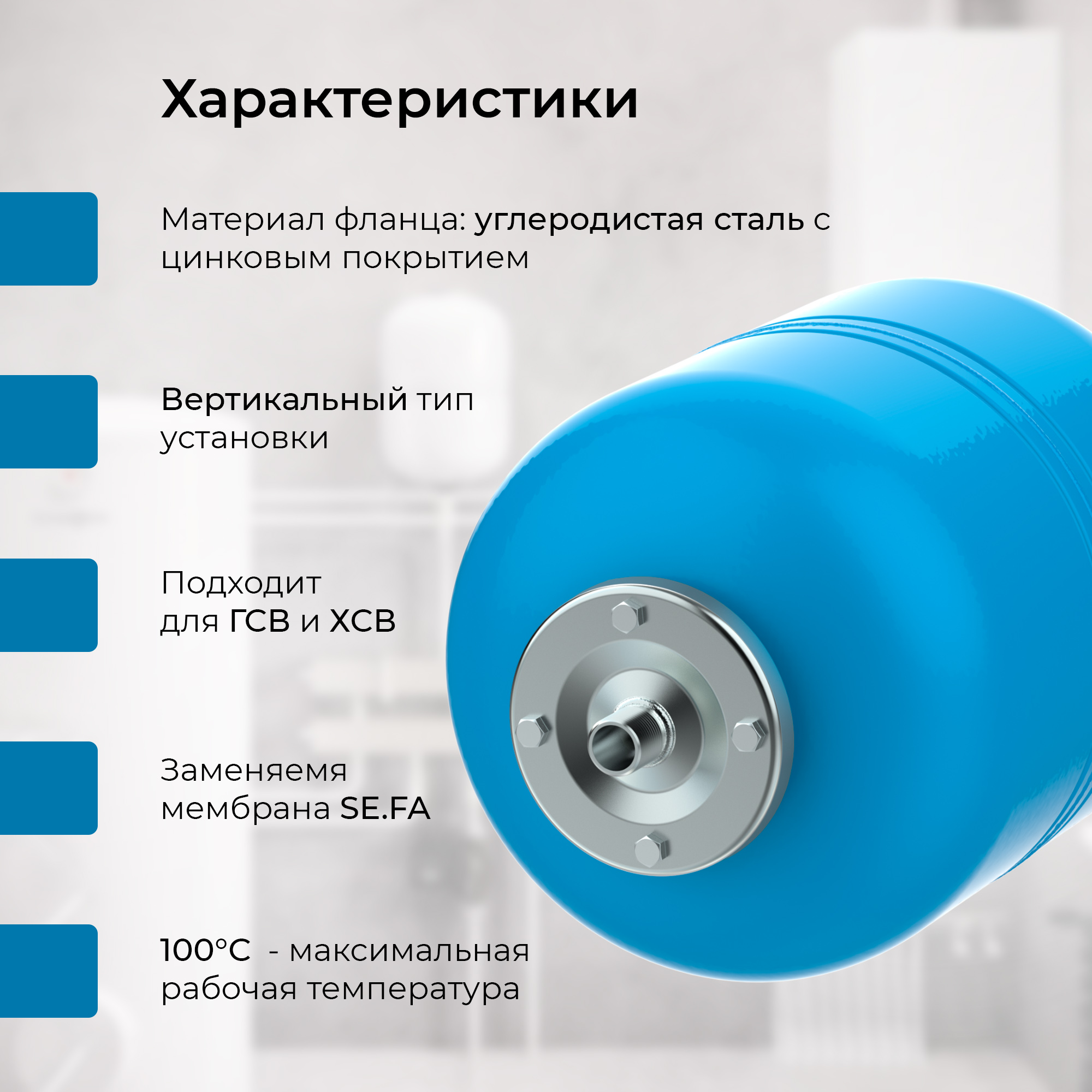 Гидроаккумуляторы предназначены для поддержания рабочего давления в системе водоснабжения, предотвращение разрушения системы от гидравлического удара, уменьшения количества включений-выключений насоса и компенсации температурного расширения воды в системе ГВС.
