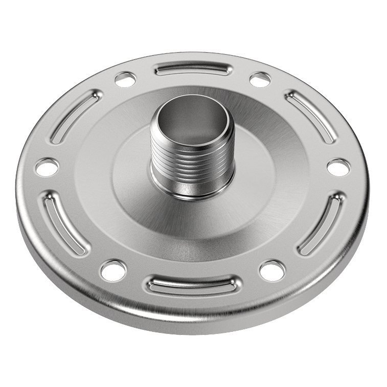Контрфланец применяется для ремонта мембранного бака. Служит для фиксации мембраны в баке. Через штуцер контрфланца бак подсоединяется к гидравлической системе.
