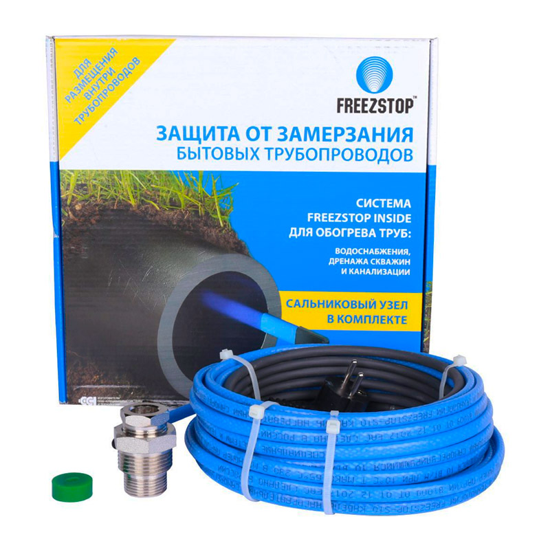 Секция нагревательная кабельная Freezstop Inside-10-2 представляет собой изделие, изготовленное на основе саморегулирующегося нагревательного кабеля, который поддерживает необходимую температуру трубопровода в течение всего холодного периода, обеспечивая его качественную и бесперебойную работу и сохранность. Система обогрева трубопроводов Freezstop Inside - идеальное решение для обогрева труб небольшого диаметра. Устанавливается внутри трубы с водой или другой неагрессивной средой, а также снаружи трубопровода (опционально).