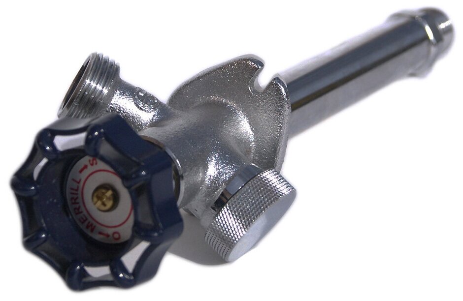 Незамерзающий стенной кран Merrill предназначен для круглогодичной эксплуатации, минусовые температуры для этого крана не страшны, слив воды из конструкции не требуется и происходит автоматически.