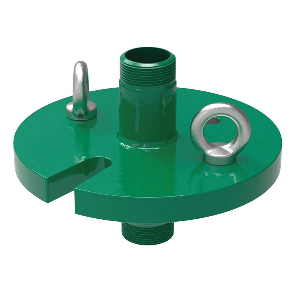 Оголовок является опорой для водоподъемной трубы скважины и защищает от попадания в нее посторонних предметов, оборудован отверстием под кабель, а также креплениями для внутренней или внешней подцепки троса.
