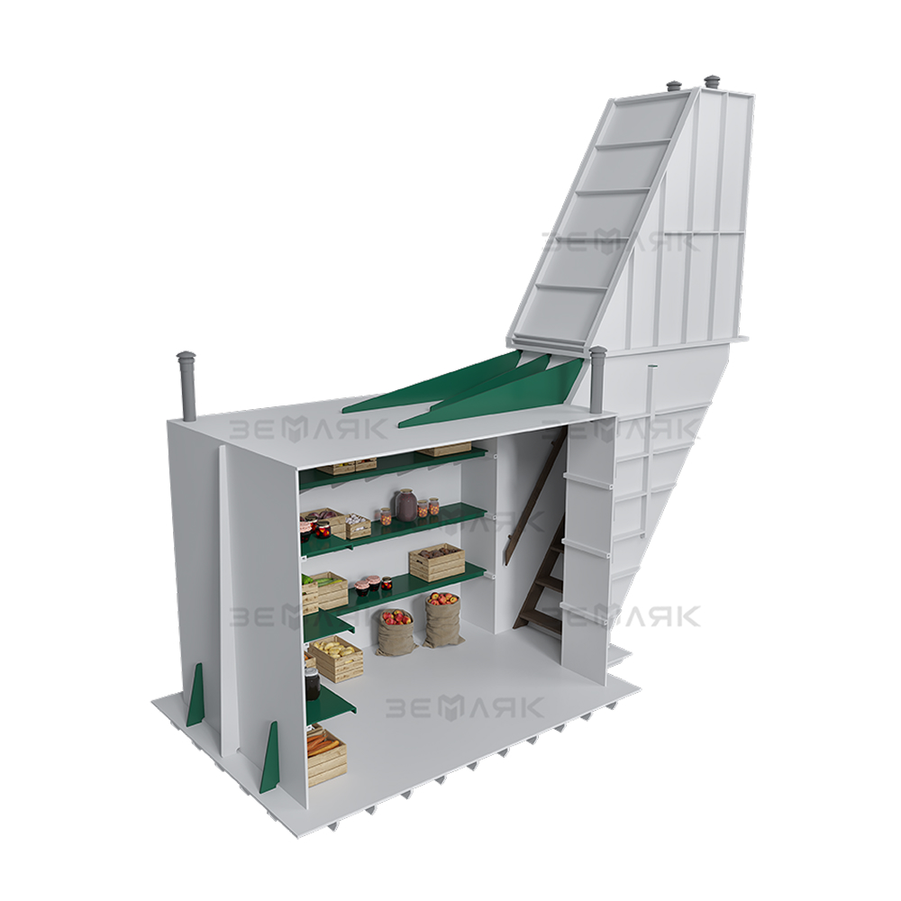 ПОГРЕБ ПЛАСТИКОВЫЙ «ЗЕМЛЯК» представляет собой герметичный подземный павильон, предназначенный для использования в хозяйственных целях: круглогодичное безопасное сухое хранение продуктов питания – овощей, солений и других домашних запасов. Погреб «Земляк» предназначен для использования на приусадебных участках, в загородных домах и коттеджах.