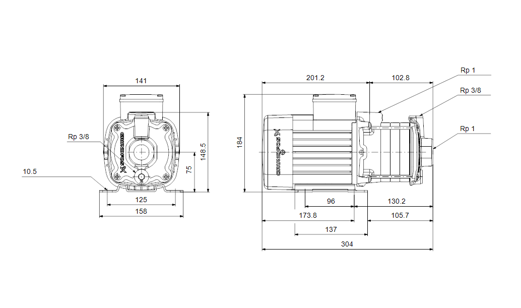 Компактный, надежный, горизонтальный, многоступенчатый, центробежный насос с односторонним всасыванием с осевым всасывающим и радиальным выпускным патрубком. Вал, рабочего колеса и камеры выполнены из нержавеющей стали. Впускные и выпускные части выполнены из чугуна. Механическим уплотнением вала является специально спроектированное, несбалансированное кольцевое уплотнение. Соединение с трубопроводами выполняется через внутреннюю трубную резьбу Витворта, Rp (ISO 7/1). Насос оснащен асинхронным 3-фазным электродвигателем на лапах, с воздушным охлаждением.