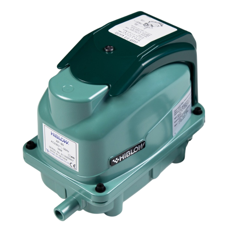 Компрессор (воздушный насос) HIBLOW XP-80 производительностью 80 л/мин при давлении 147 мбар (14,7кПа) с "умным" воздушным фильтром и низким энергопотреблением.