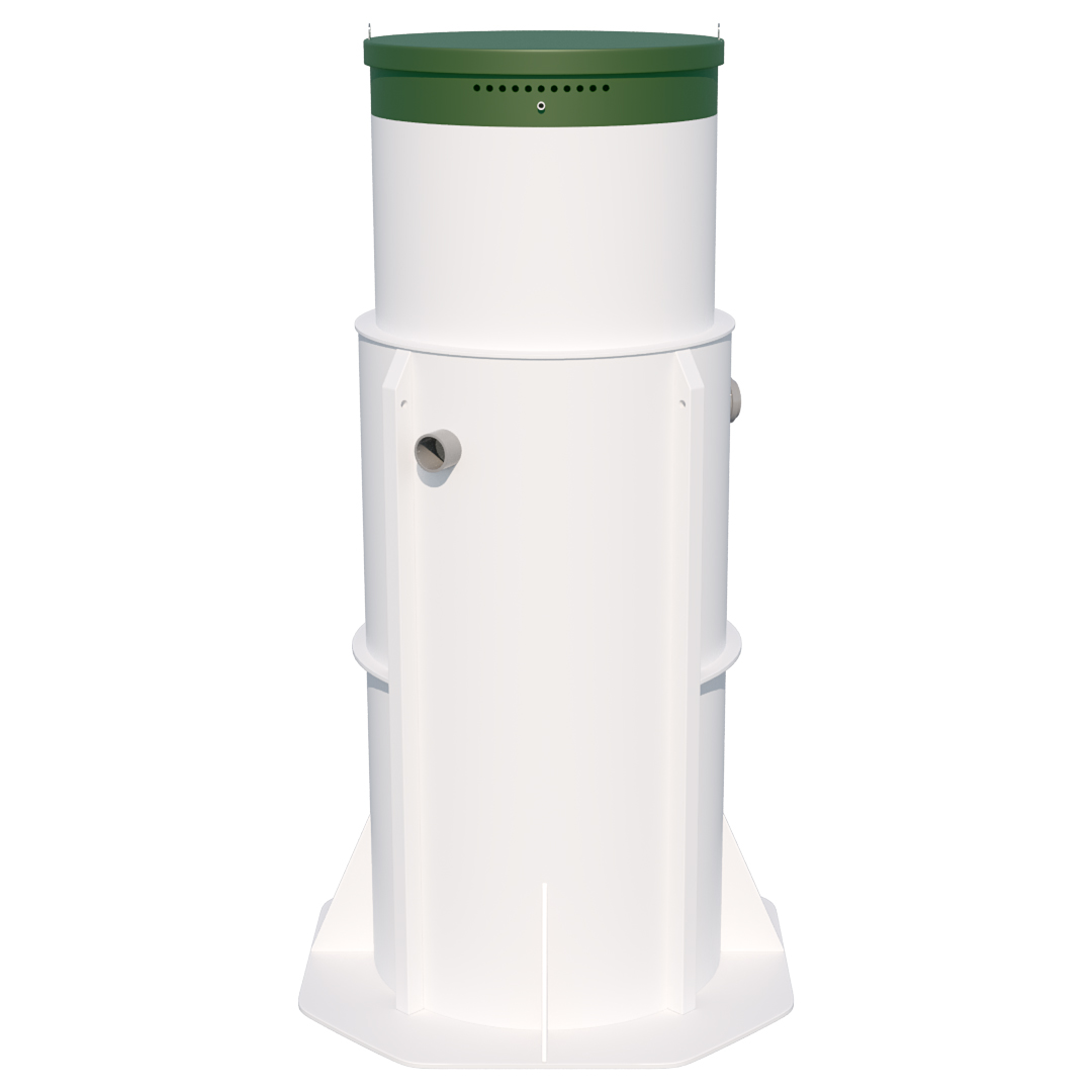 Горловина станции оборудована компрессорным отсеком. Здесь размещены компрессоры и розетки, чтобы подсоединять к электропитанию электрооборудование. Распределительно-регулировочный узел размещён на внешней стороне стенки камеры с компрессорами. Из него идут воздуховоды к каждому потребителю станции автономной канализации.
