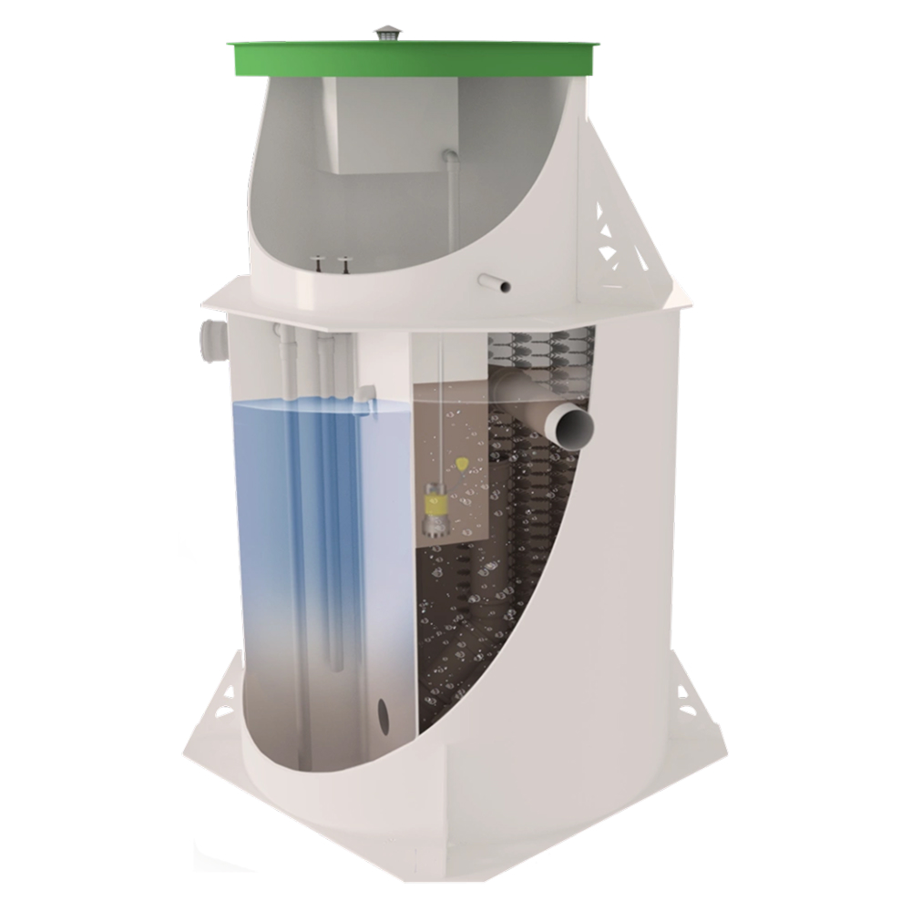 Эта станция – настоящая находка для тех, кто ценит надежность и простоту. Ее прочный корпус изготовлен из первичного полипропилена - качественного и долговечного материала, усиленного ребрами жесткости, что делает конструкцию устойчивой к давлению грунта. Конструкция станции крайне простая, построенная на системе переливов без тонких трубок и шлангов, которые могли бы засориться. Это значит, что вам не придется беспокоиться о поломках или частом обслуживании и проводить его всего 1 раз в 1,5-2 года - удалять накопившийся ил самостоятельно или с помощью специалистов.